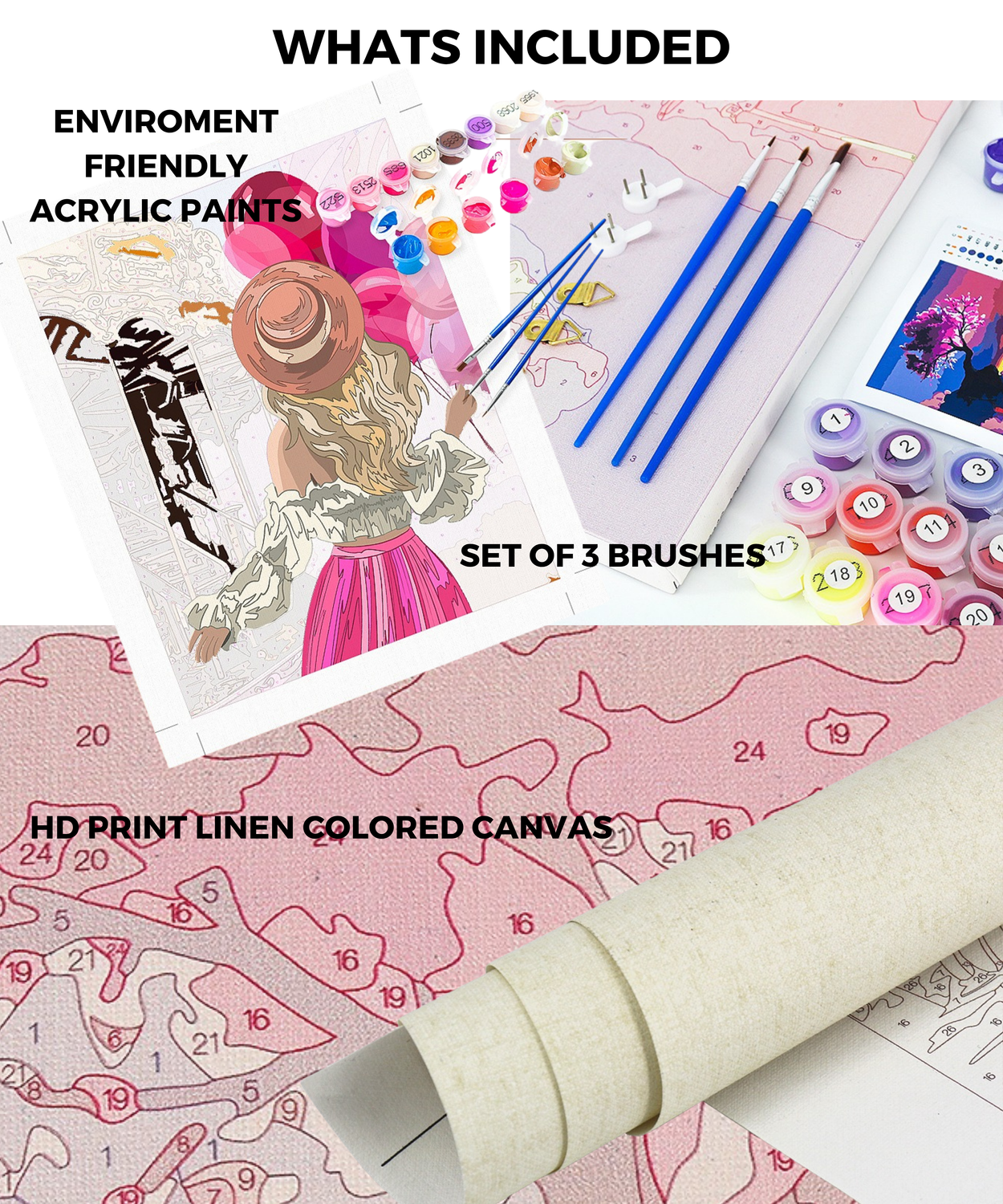 Each kit includes a canvas with a numbered design. Simply match the paint to the corresponding number, dip your brush, and bring your artwork to life. Then sit back and enjoy the beauty of what you've created.